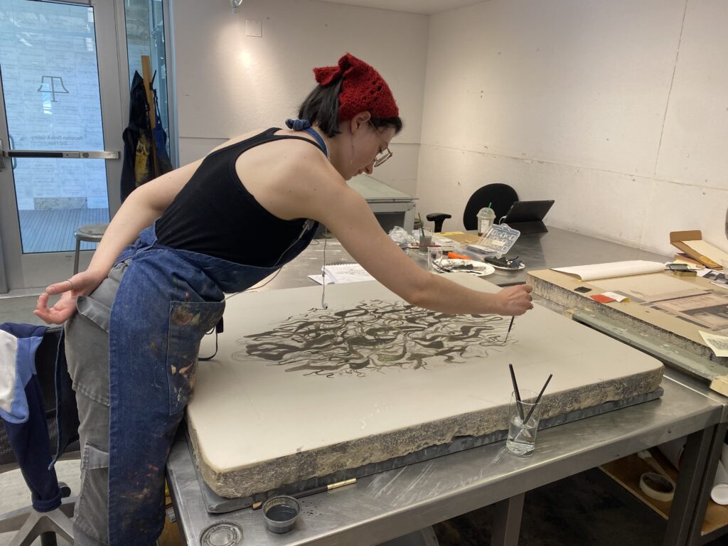 El proceso de grabado colaborativo es un trabajo de apertura entre el artista y el impresor que empuja el trabajo de los artistas a nuevas formas desconocidas.