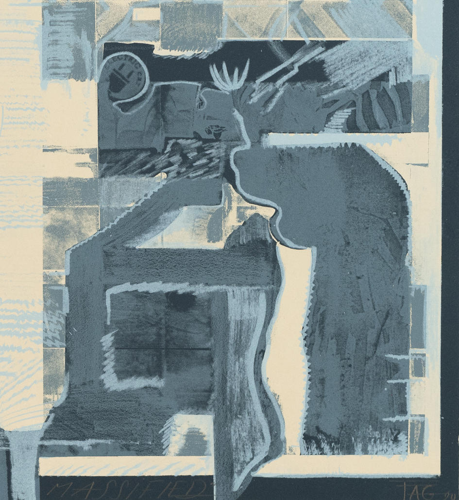 Litografía a tres colores y tres matrices en papel Somerset Velvet Newsprint Grey, 280 gr.